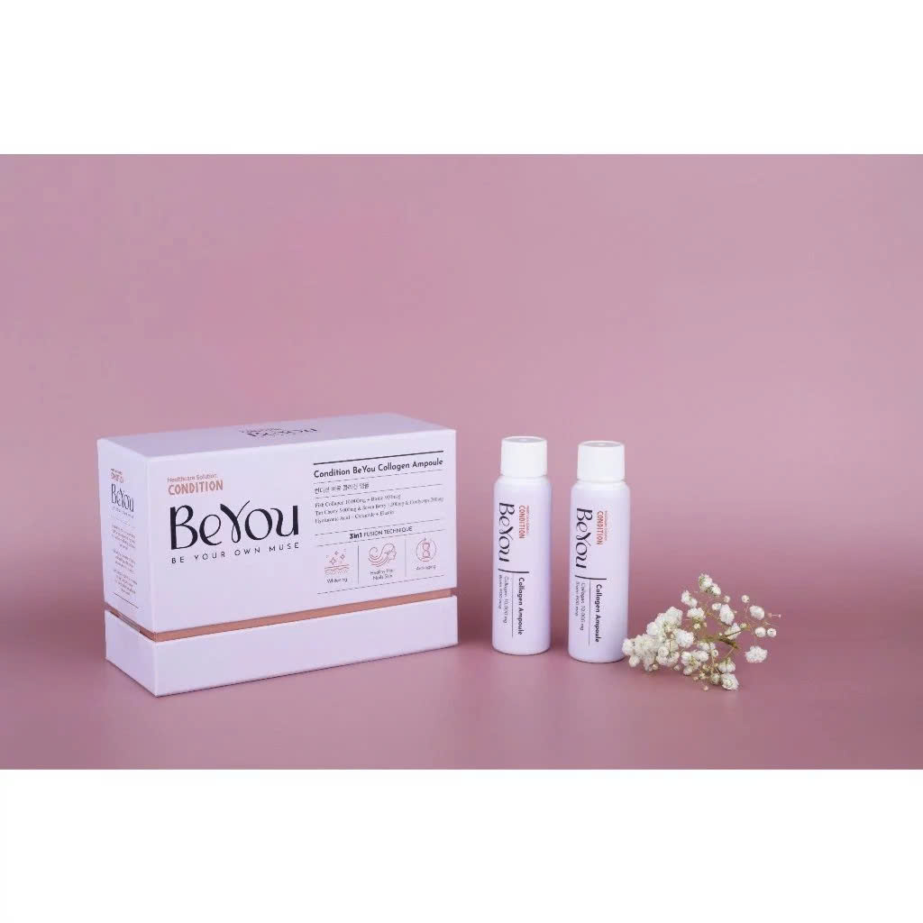 Collagen Condition BeYou là sản phẩm bổ sung collagen thủy phân siêu phân tử (300Da) từ cá với hàm lượng lên đến 10.000mg trong mỗi chai, kết hợp cùng các chiết xuất từ trái cây tự nhiên, vitamin và hoạt chất chăm sóc da cao cấp như Glutathione, Hyaluronic Acid, Elastin, Ceramide... giúp hỗ trợ cải thiện làn da, tăng độ đàn hồi, dưỡng ẩm sâu, làm sáng da và làm chậm quá trình lão hóa từ bên trong.
